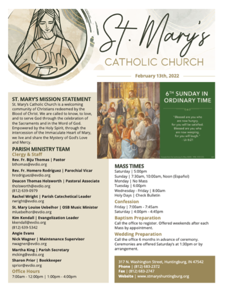 Bulletin designed for St. Mary’s Catholic Church in Huntingburg, Indiana.
